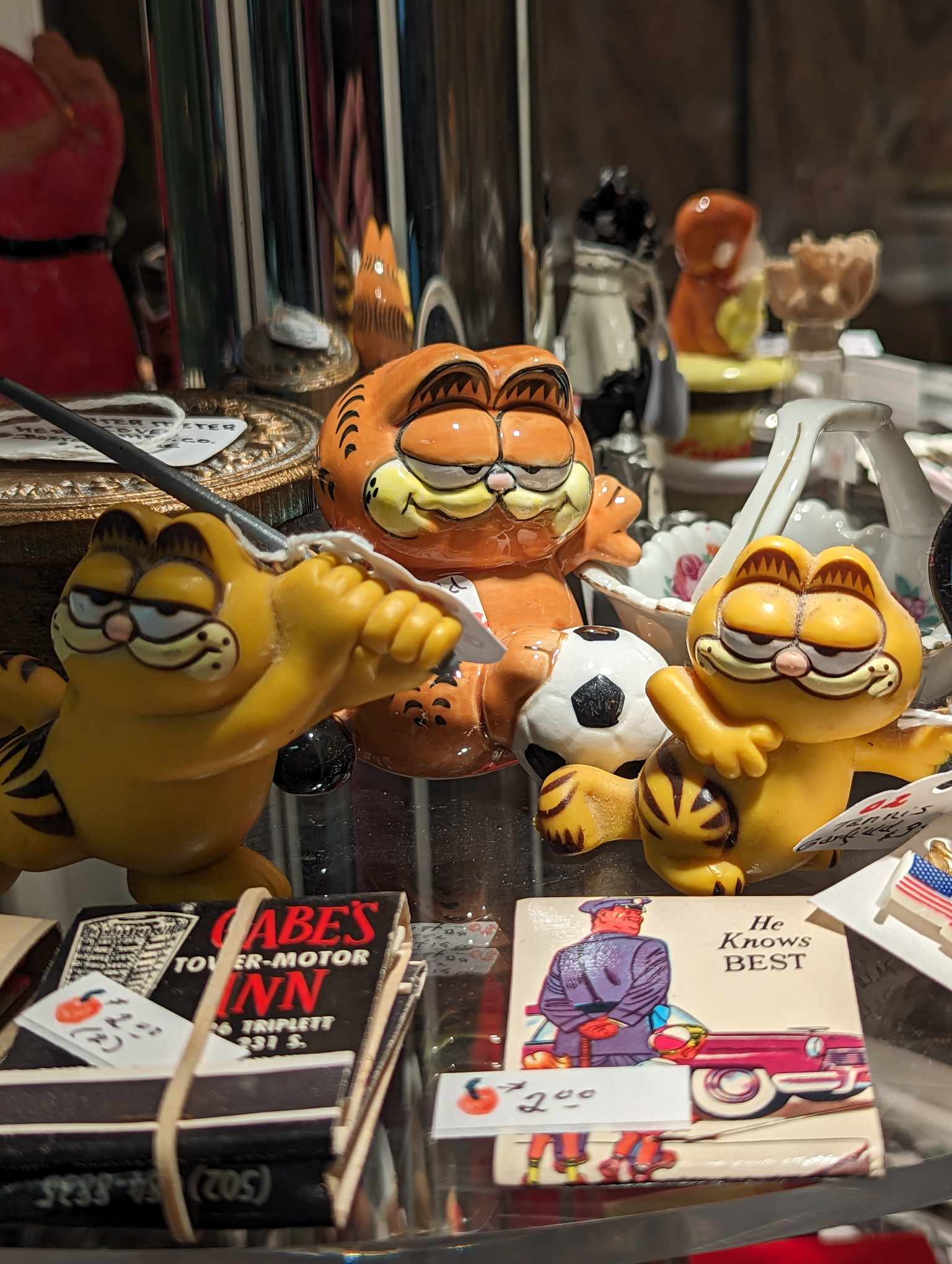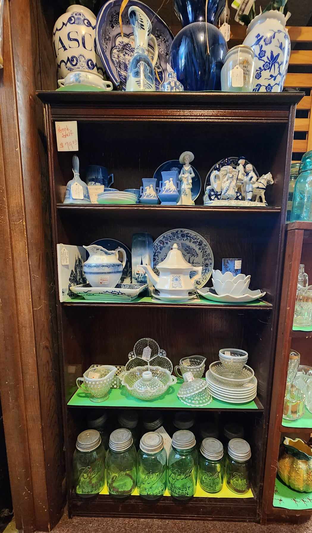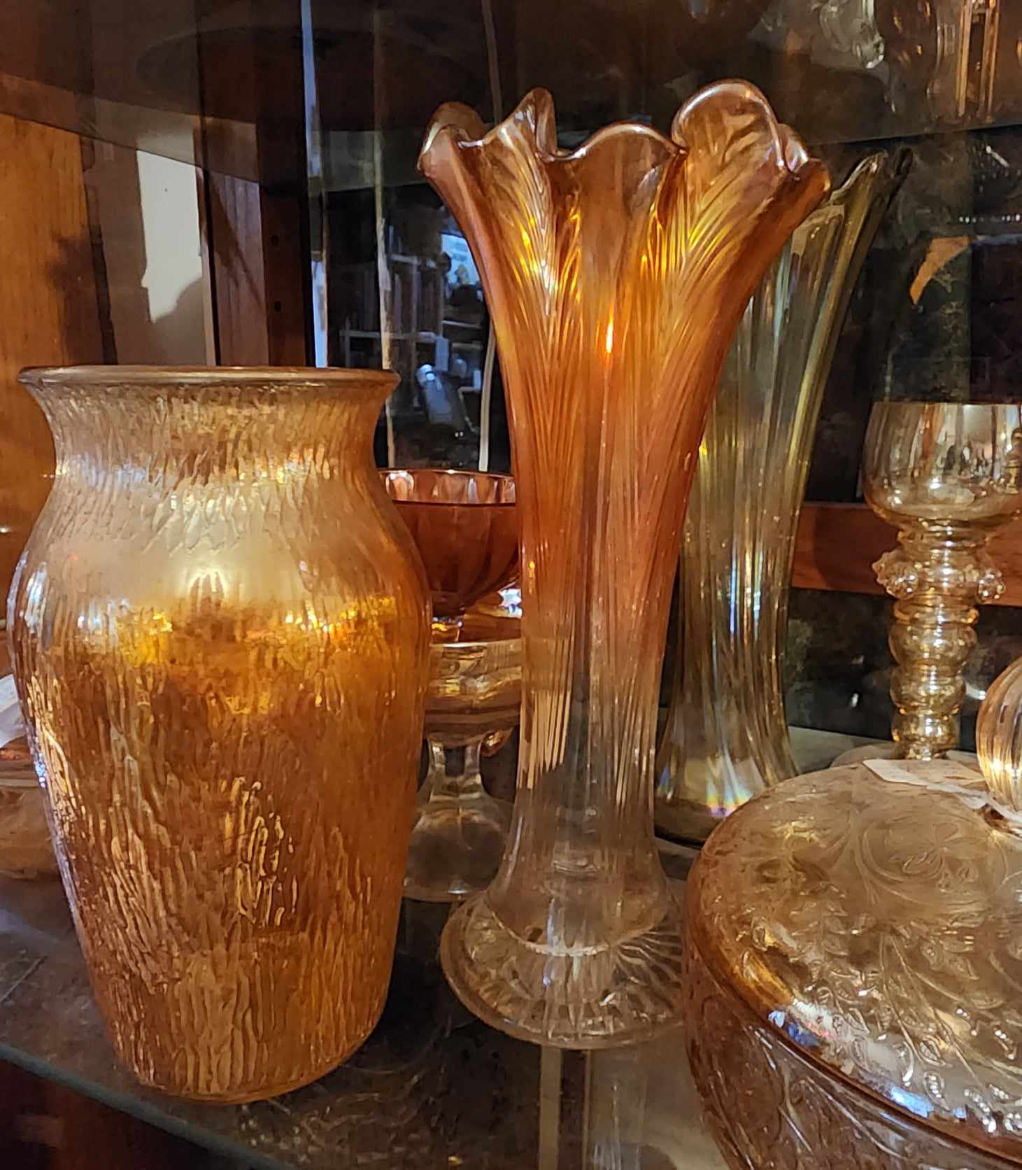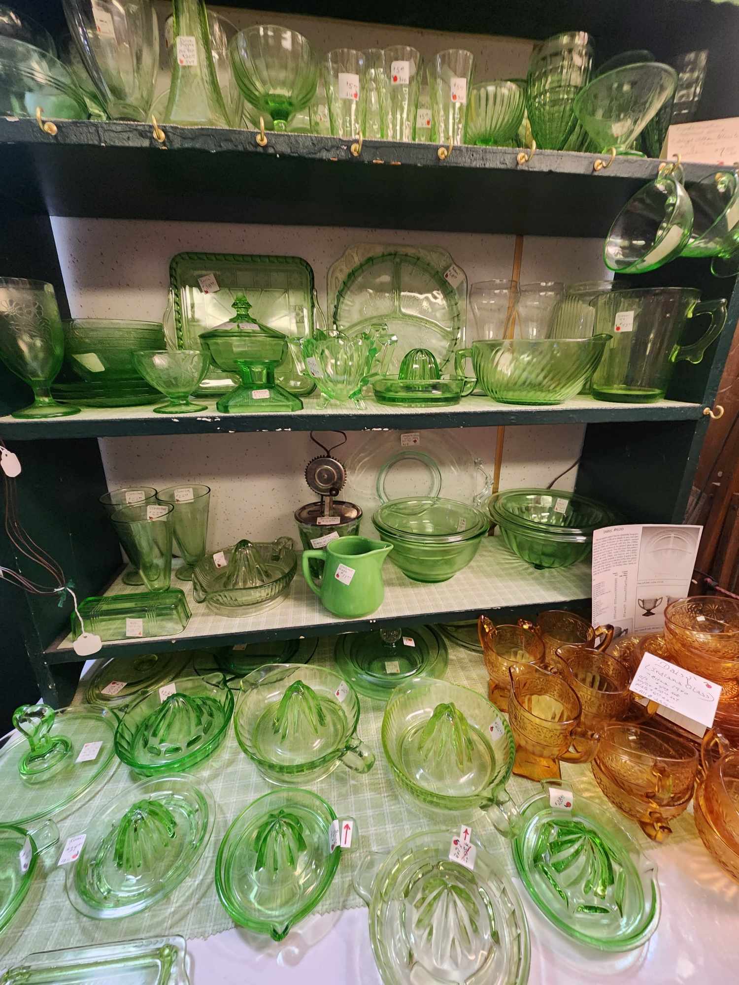 Large selection of glassware, pottery, furniture and collectibles. Toys, tools, advertising, sports memorabilia, quilts, linens, breweriana, copperware, kitchenware, oil lamps, electric lamps.