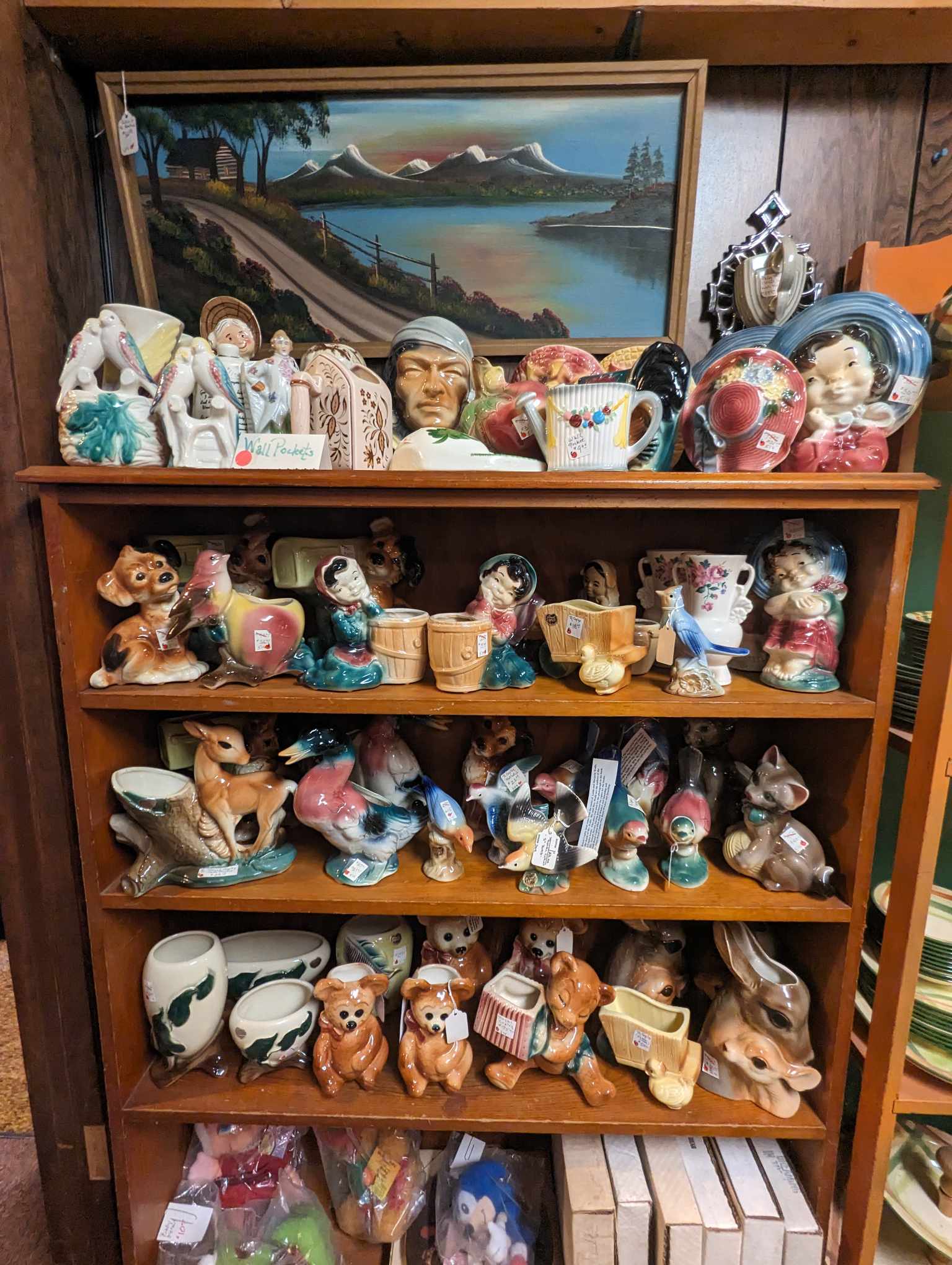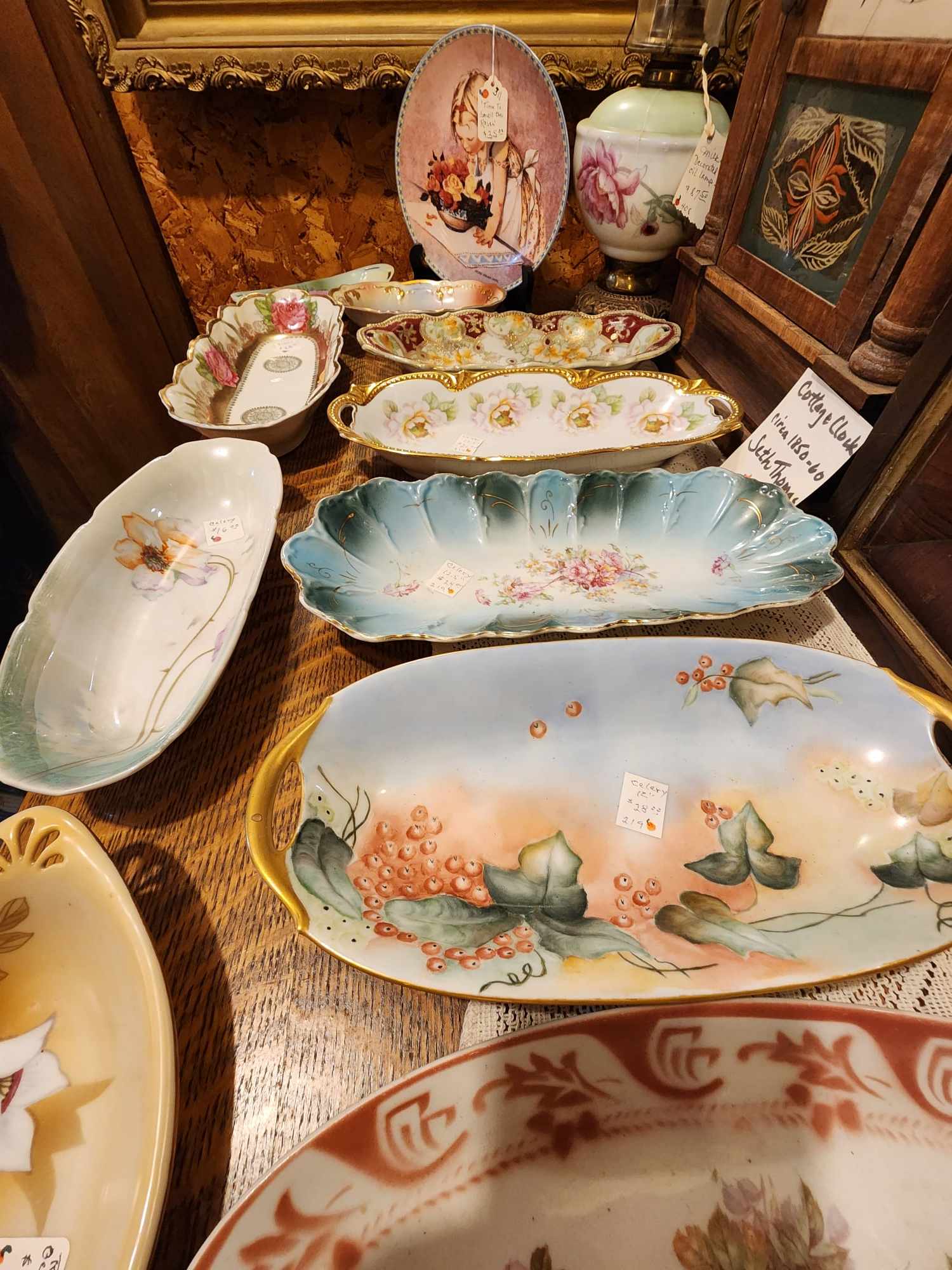 Unique shop with a large selection of glassware, pottery, furniture and collectibles. Toys, tools, advertising, sports memorabilia, quilts, linens, breweriana, copperware, kitchenware, oil lamps, electric lamps.